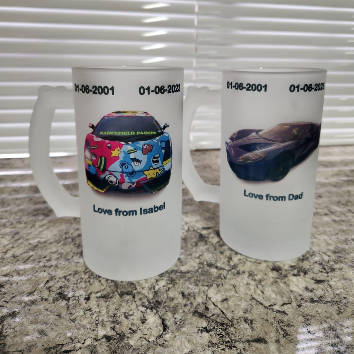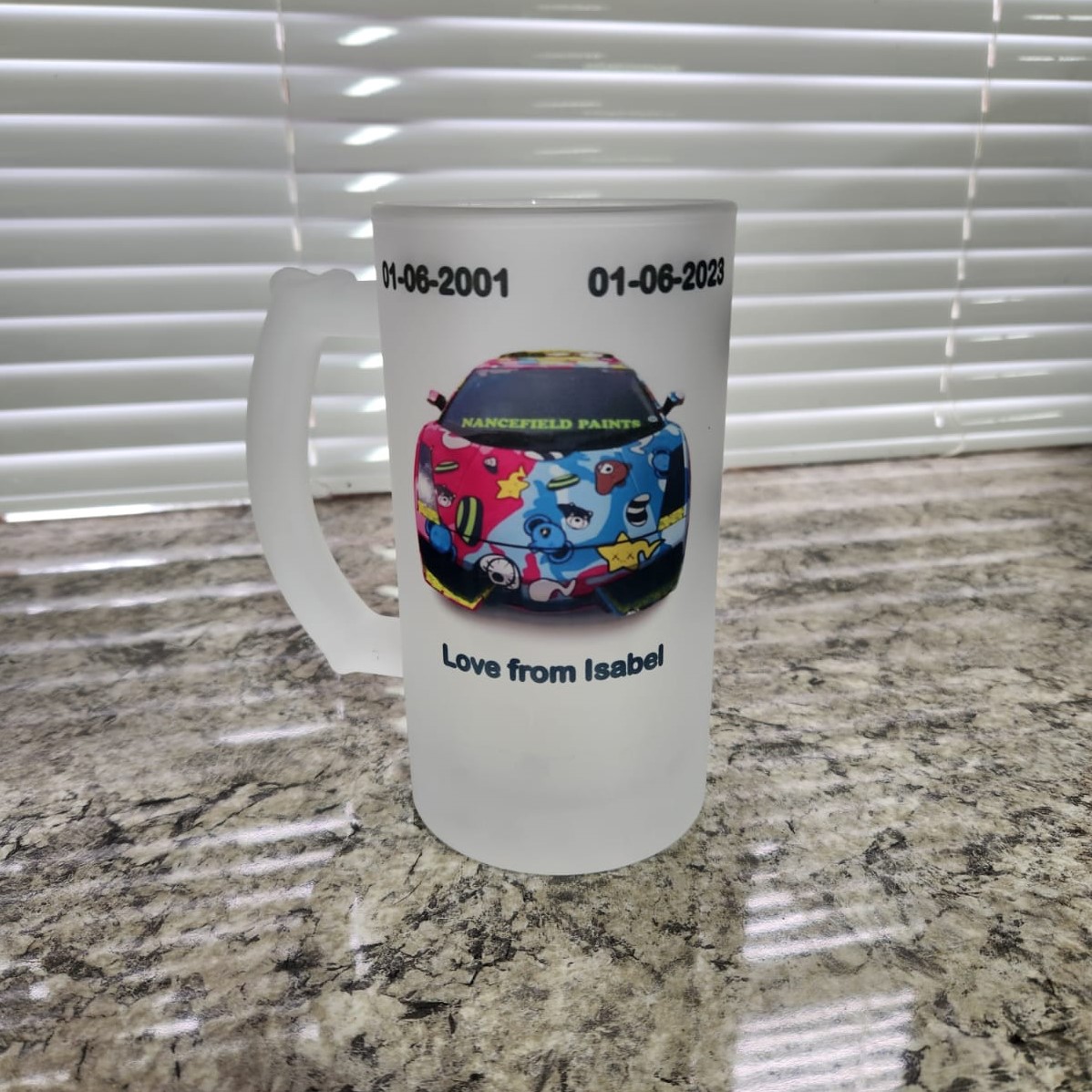 Treat a special friend or loved one to a customized beer mug! You can add anything of your choice to the mug from quotes, messages and even fully colored images. They are perfect for a one-of-a-kind gift.