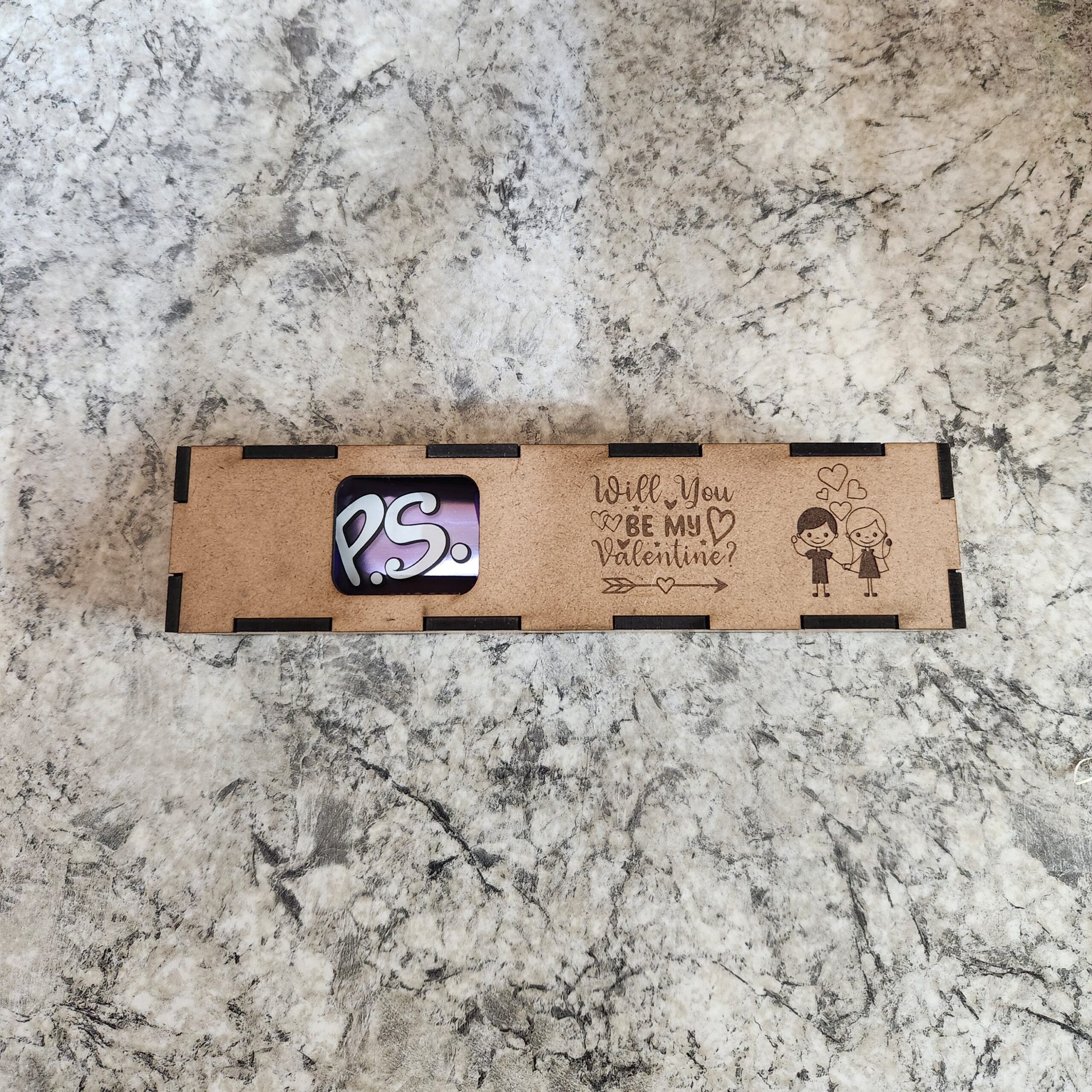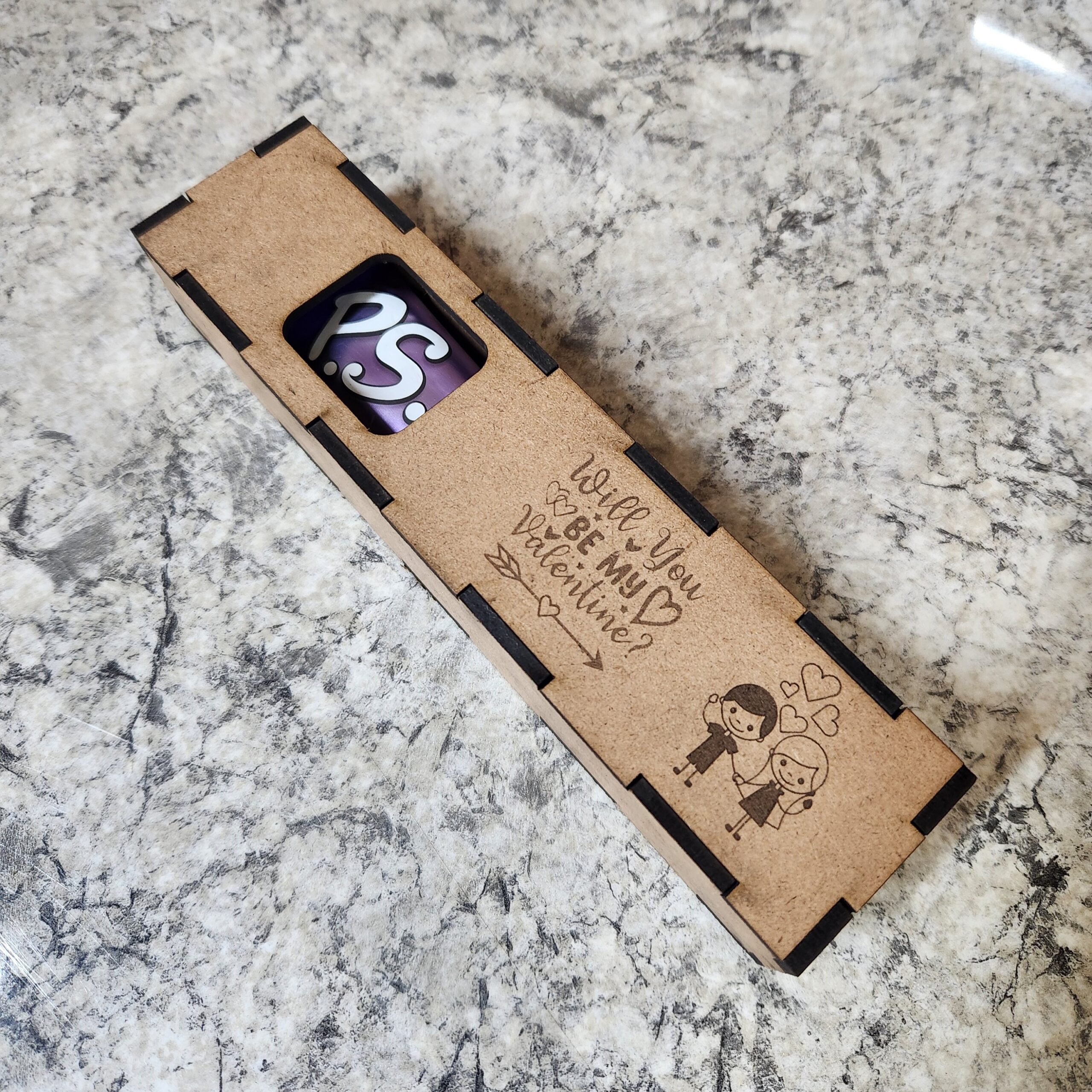 Our P.S – will you be my Valentine box is specially designed to fit a P.S chocolate, with elegant engravings on it that will make your Valentine question and moment super special!